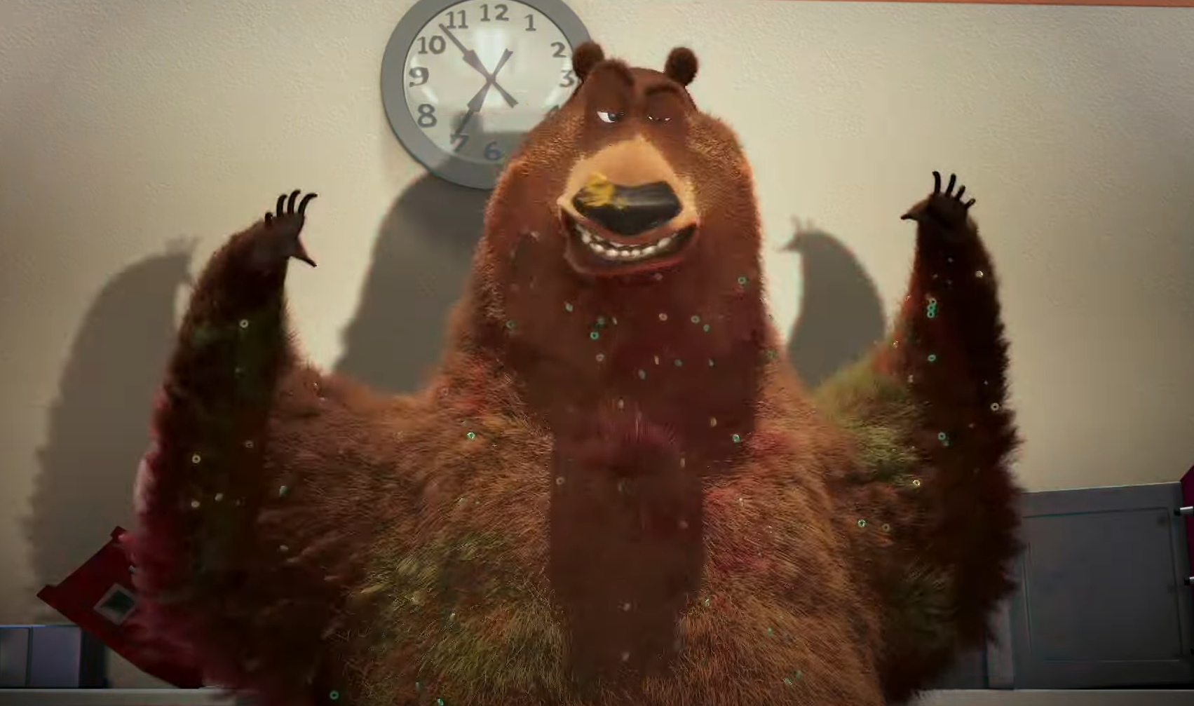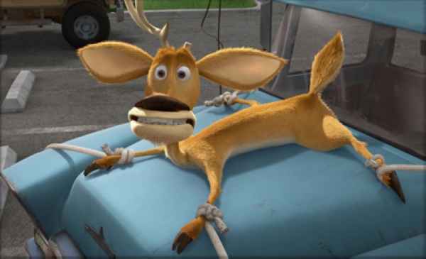 And sometimes it can involve taking and testing different shader models, working directly with the various modeling departments to develop different looks for Boog and Elliot seen here from Open Season.  After testing, I then took these models and published them into our systems, supporting the artists in pulling in the variants and updating their shots.