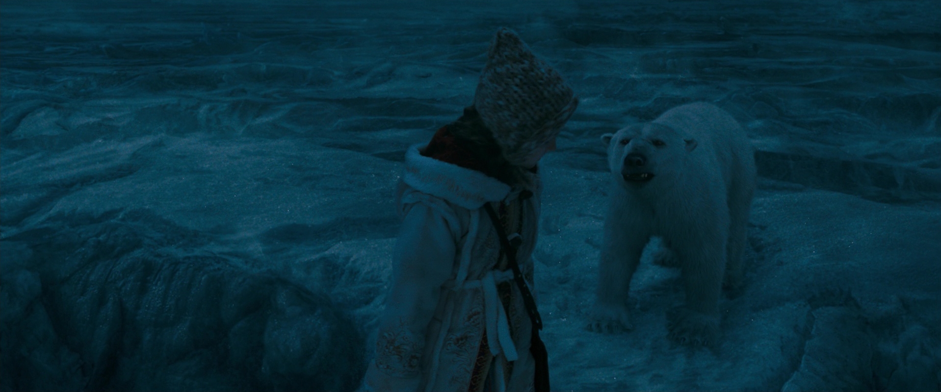 One aspect of film work is that it’s a living process working with the studio and the director, and sometimes you can toil for a year doing amazing work and have all of it get cut.  Such was the case on The Golden Compass, where my arctic environment and rendered familiars disappeared, never to be seen again….